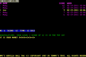 I’m sorry, but I can’t find any information about a video game called ‘Tommy’s Gorilla Ball Tag’ developed by ‘Tommy’s Toys’ in 1987.