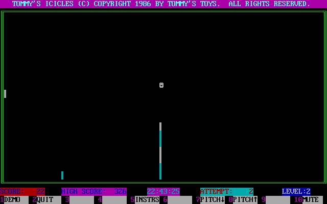 Tommy’s Icicles, released in 1986 by Tommy’s Toys, is a retro-style arcade game known for its simplistic yet engaging gameplay. Designed during the early era of video games, it provides a nostalgic experience that captures the charm of the 1980s gaming culture.