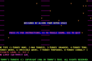 I’m sorry, but I couldn’t find any specific information about a video game titled “Tommy’s Turkeys” from 1986 developed by “Tommy’s Toys.” It’s possible that this game is not widely recognized or may have very limited information available. If the game does exist and you have any additional details or context, I might be able to assist further.