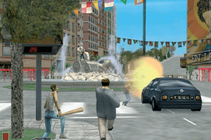 Players take on the role of a clumsy and somewhat inept protagonist navigating through various missions. The game combines action and humor, presenting players with a variety of challenges and environments. It features a mix of shooting, driving, and strategy elements.