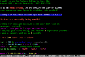 Trade Wars 2002 is a multiplayer, text-based strategy game that immerses players in the world of interstellar trade and conquest. Developed by Epic Interactive Strategy and released in 1990, the game requires players to manage resources, engage in diplomacy, and outmaneuver opponents in a dynamic space setting.