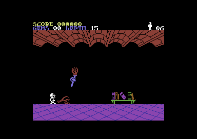 The game features an intricate maze-like series of caverns and platforms where players must navigate with skill and precision. The protagonist’s primary challenge is to escape this underground labyrinth while avoiding various enemies and hazards. Players must use their gaming agility and problem-solving skills to progress through different stages, making their way through the treacherous game environment.