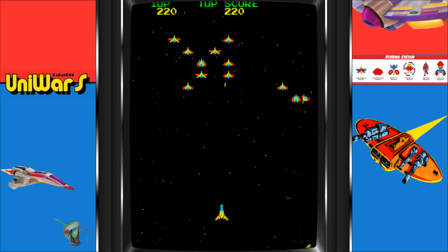 ‘UniWar S’, released in 1980 by the Japanese developer Irem, is a classic arcade space shooter game that was part of the wave of shooter games that characterized the early era of video gaming. Like many of its contemporaries, it involved players piloting a spacecraft and shooting down waves of enemy ships.
