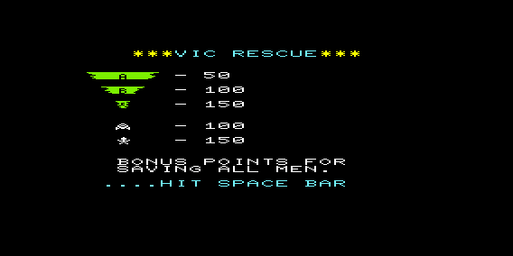 The player’s main objective is to navigate through a series of obstacles and challenges to complete the rescue mission. Much like many games of its time, precision and timing are crucial to succeeding in VIC Rescue.