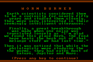 I’m sorry, I couldn’t find any information regarding a videogame titled “Worm Burner” released in 1987. If you have any other inquiries or need assistance, feel free to ask!