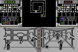 Players navigate through interconnected corridors, taking down various enemy robots that populate the mazes. The perspective is an over-the-shoulder view, adding a layer of complexity as you maneuver through the three-dimensional environment. Its split-screen feature allowed for simultaneous two-player action, which was a highlight of the game.