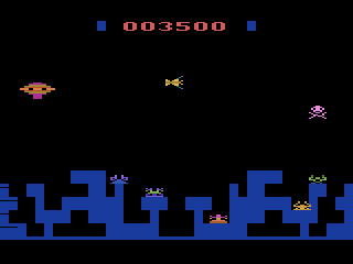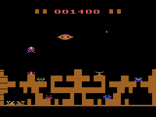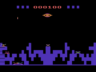 Released in 1983, this video game was developed by Bomb for the Atari 2600. It’s an aerial combat game where the player controls a spaceship with the mission of attacking enemy bases located on the ground.