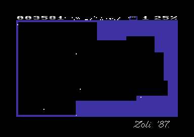 In Zolyx, players control a marker that moves around a rectangular playing field. The objective is to claim territory by drawing lines and enclosing areas of the field. Players must avoid enemies that can disrupt their progress, making each level a test of skill and timing. The challenge intensifies as the player progresses through the levels, with enemy numbers and speed increasing.
