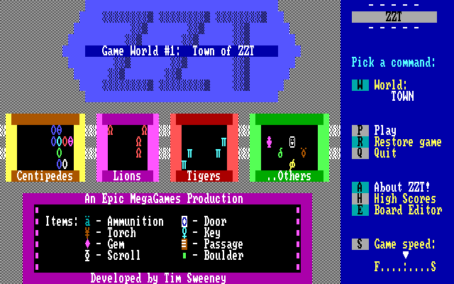 Released in 1991 by Epic MegaGames, Inc., ZZT is a unique action-adventure puzzle game that has left a significant mark in the history of computer games. Created by Tim Sweeney, who would later become the founder of Epic Games, ZZT is a simplistic yet robust game that marries rudimentary graphics with complex gameplay mechanics.