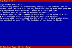 The game is known for its challenging puzzles that require logical thinking and keen observation. Players must navigate through numerous rooms, each filled with unique challenges that must be overcome to unlock further areas of the castle. The interface of the game is text-based, typical of the era, where players interact with the environment through typed commands.