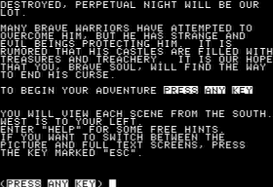 The gameplay consists primarily of text-based exploration where players make decisions through command inputs. You are tasked with navigating the eerie castles, solving puzzles, and fighting against dark forces. The game’s narrative unfolds through descriptive passages, demanding both strategic thinking and a vivid imagination.