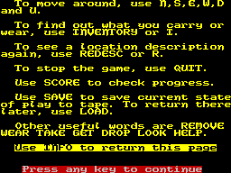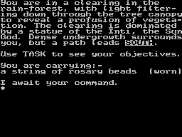 Given the technological limitations of the mid-1980s, the graphics are basic but effective in depicting the adventurous theme of the game. The use of pixel art and simple color schemes evokes a unique charm. The sound effects and minimalistic background music contribute to the overall atmosphere, enhancing the sense of immersion for players.