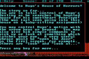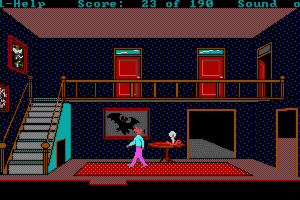 Players take on the role of the main character, who must explore a mysterious mansion to save his beloved girlfriend. The game is known for its simple graphics and text-based commands, typical of early adventure games, challenging players to think critically and creatively to solve various puzzles.