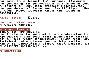 For a game released in 1990, it features pixelated graphics typical of the era, with vibrant colors and distinct character designs. The music and sound effects complement the mythological theme, creating an immersive atmosphere that captures the essence of the adventure.