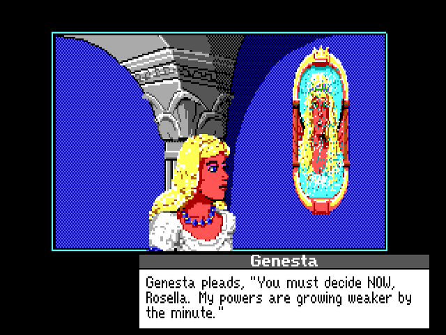King’s Quest IV: The Perils of Rosella is an adventure game released in 1988 by Sierra Entertainment. It’s the fourth installment in the King’s Quest series and showcases the tale of Princess Rosella as she embarks on a quest to save her father, King Graham, from a mortal illness. Set in a beautifully crafted fantasy world, players guide Rosella through challenges and puzzles, utilizing items and interacting with various characters to progress.