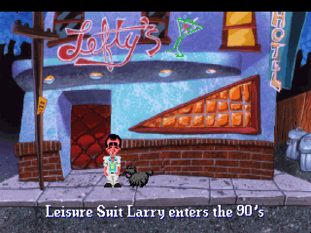 Leisure Suit Larry in the Land of the Lounge Lizards is a point-and-click adventure video game released in 1987 by Sierra On-Line, later re-released in 1991. Designed by Al Lowe, the game is recognized for its humor and adult theme, centered around the protagonist, Larry Laffer, a middle-aged man in leisurewear on a quest to lose his virginity in the city of Lost Wages.