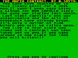 Released in 1984, Mafia Contract is a vintage video game that immerses players into a world of organized crime during the early 20th century. In this game, players assume the role of a budding gangster tasked with navigating the challenges of loyalty, betrayal, and power within a fictional criminal syndicate.
