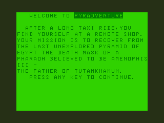 Released in 1987, ‘Pyradventure’ is a classic action-adventure video game that invites players into a captivating world filled with challenges and exploration. The game combines elements of puzzle-solving with engaging exploration, set in a vast, dynamic environment that captures the imagination of players of its time.