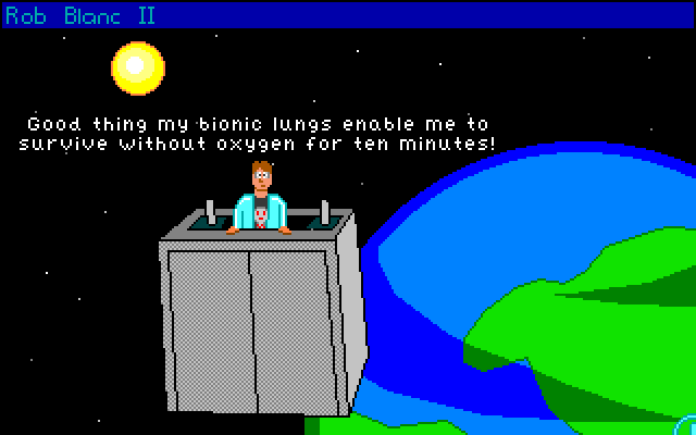 Rob Blanc II: Planet of the Pasteurised Pestilence is a point-and-click adventure game released in the year 2000 and developed by Fully Ramblomatic. This game is the second installment in the Rob Blanc series, which follows the humorous exploits of the titular character, Rob Blanc, as he navigates through various intergalactic adventures.
