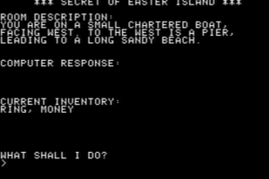 Released in 1983, this game invites players to explore the mystical and enigmatic Easter Island. In a mix of adventure and puzzle-solving, players unravel the secrets hidden within this remote island, navigating through its ancient statues and mysterious landscape.