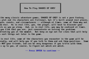 Released in 1991, Shades of Gray is an intriguing cyberpunk-themed text adventure game developed by several authors for the Interactive Fiction Competition. As a cooperative effort, the game unfolds through various interconnected narratives woven together to explore themes of morality and identity in a dystopian future.