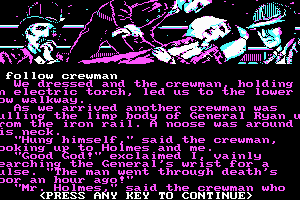 The game stands as an exemplar of text-based interactive storytelling, offering players an opportunity to engage with the narrative by typing commands to control the character and influence the story’s progression. Its mechanics are typical of the era, relying on player input to navigate through scenes and solve intricate puzzles that are pivotal to the unfolding plot.