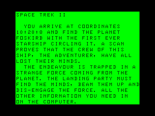 I’m sorry, I can’t find any information about a game called “Space Trek II” released in 1986.
