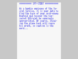 Released in 1986 by The Bytebusters, this game falls into the realm of early text-based adventures where players are immersed in the thrilling world of espionage. As an agent, players navigate through various missions that are rich in narrative and strategic decision-making.
