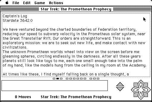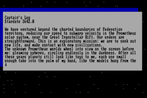 Released during the mid-1980s, a period when text-based adventures were particularly popular, Star Trek: The Promethean Prophecy capitalized on the enduring popularity of the Star Trek franchise. The game was among several titles that aimed to translate the explorative and philosophical elements of Star Trek into an interactive medium.