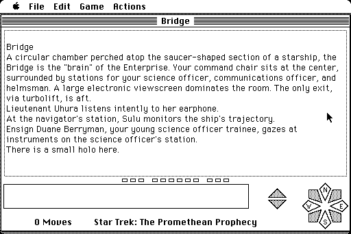 Trans Fiction Systems Inc. was tasked with bringing the vast and imaginative world of Star Trek to life through text. The game was noted for its attention to detail and its attempt to remain true to the Star Trek ethos, emphasizing exploration, diplomacy, and problem-solving over combat.