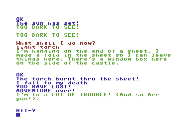 Though not one of the most widely discussed games of its time, it remains a noteworthy example of text-based adventure games from the mid-1980s. It showcases the simplicity and depth achievable through text-only gameplay, a format popular during that era before the rise of more graphically intense gaming experiences.
