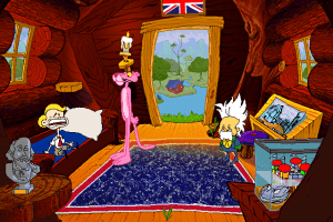 The visuals in the game reflect the traditional animation style associated with the Pink Panther series, featuring colorful backgrounds and characters. The ambient sound and music maintain a playful tone that complements the adventure.