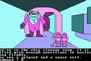 This 1985 release from Interplay Productions, Inc. is an early example of the graphic adventure game genre. As a sci-fi themed adventure, it blends text-based interaction with graphical elements, offering players an engaging experience for its time.