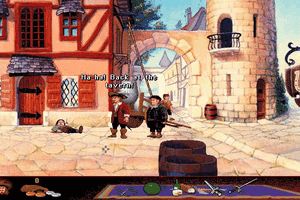 The gameplay involves guiding the protagonist through various puzzles, using the point-and-click interface to explore the environment and interact with different characters. The objective is to resolve a conspiracy that threatens the kingdom, unveiling a plot filled with humor and satire.