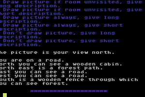 The game employs a unique blend of text commands and simple graphics to create an immersive experience. Players navigate through different locations by typing specific commands that guide their actions and decisions. Each scene is richly described, requiring imagination and strategic thinking to progress.