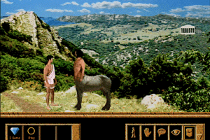 The game features detailed photorealistic graphics for its time, utilizing live photographic sequences and backdrops. These visual elements provide an authentic and immersive experience as players traverse through the richly depicted landscapes of ancient Greece.