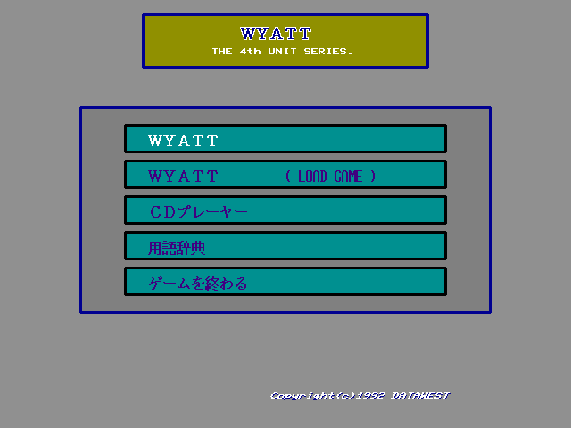 ‘Wyatt: The 4th Unit Series’ is a Japanese visual novel and adventure game developed and released by Data West in 1992. As part of the broader “4th Unit” series, the game combines elements of interactive storytelling with point-and-click mechanics.