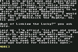 The game relies heavily on text commands, where players input commands to navigate the environment, solve puzzles, and interact with the world. Set in a mysterious underground cavern, players must use their wit to progress through the game’s story. As with other Zork titles, it combines elements of fantasy, mystery, and humor to engage the player thoroughly.