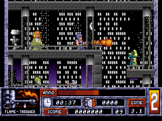 Featuring an engaging mix of platforming and shooting mechanics, the game challenges players to utilize their arsenal effectively. Armed with a diverse range of weapons and abilities, you must traverse hostile environments, rescuing hostages and eliminating alien threats. Each level presents unique challenges, requiring players to adapt and devise new strategies.