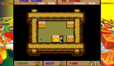Released in 1990 by Namco, this game is a puzzle-based title that challenges players to use their strategic thinking skills. Set in a grid-like environment, the primary objective is to push boxes onto designated target locations to progress through various levels. The game requires careful planning and foresight, as players must avoid getting the boxes stuck in unmovable positions.