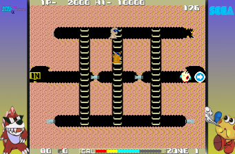 Set in a colorful and whimsical environment, the game challenges players to navigate through underground tunnels. Working against time, players must outmaneuver opponents and successfully complete levels by strategically moving through various obstacles. The game’s mechanics require quick reflexes and sharp strategic thinking, characteristic of the arcade titles from this era.