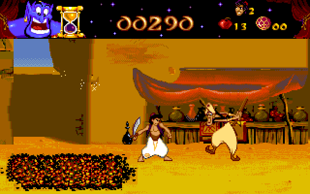 The 1994 platformer developed by Virgin Interactive Entertainment offers a captivating adaptation of the beloved Disney film. Players take on the role of Aladdin, embarking on a thrilling adventure through colorful levels inspired by Agrabah, the Cave of Wonders, and more. With the help of his trusty companion, Abu, Aladdin leaps through obstacles, avoids dangers, and confronts iconic villains like Jafar, all while collecting precious gems and apples to aid in his quest.