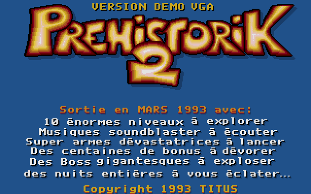 Released in 1993, this title is a classic side-scrolling platform video game developed by Titus Interactive. It serves as a sequel to the original prehistoric adventure, continuing the journey of the club-wielding caveman through a world filled with whimsical dangers and challenges.