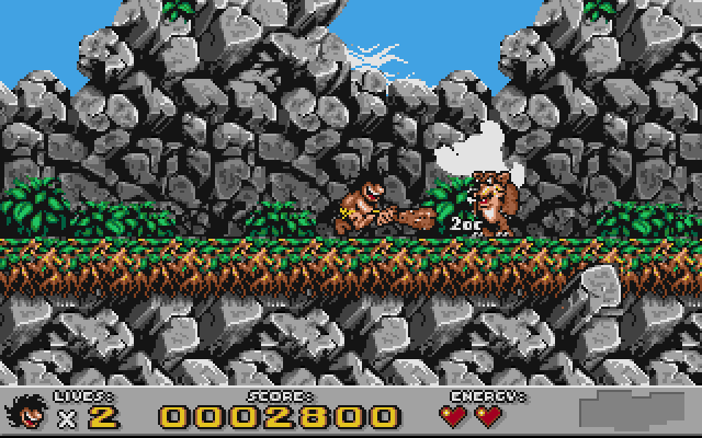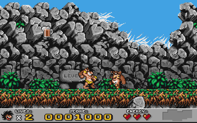 Features colorful and detailed pixel art graphics that were considered impressive for its time. The game captures the whimsical and humorous tone of a prehistoric world through its vibrant visuals. The sound design includes catchy tunes and sound effects that enhance the overall immersive experience.