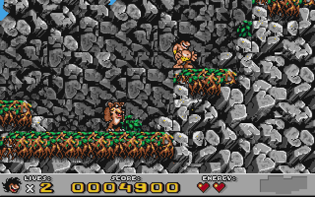 Players control the caveman protagonist as he navigates through various levels, battling prehistoric creatures and gathering food items for points. The gameplay is characterized by its platform mechanics, involving jumping, climbing, and defeating enemies with a trusty club. The levels are filled with hidden secrets and bonuses, encouraging exploration and replayability.