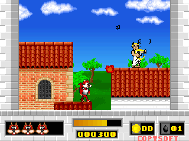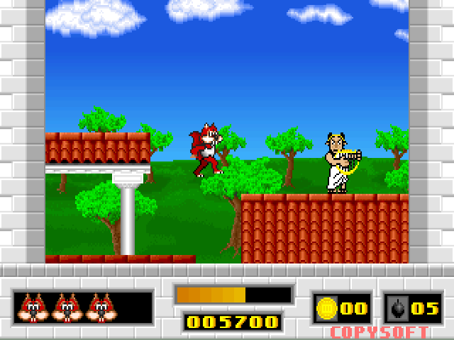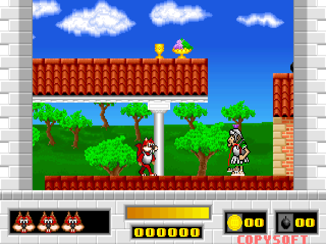 Typical of early 90s games, the graphics showcase colorful and vibrant sprite-based visuals. The characters and environments are cartoonish and lively, aligning well with the game’s comedic tone. The audio complements this with playful sound effects and cheerful background music, enhancing the player’s experience.
