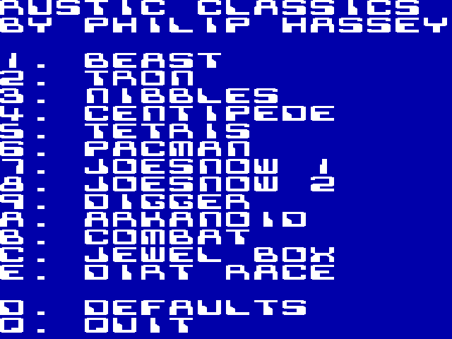 I’m sorry, but I don’t have information on a video game titled “The Rustic Classics” developed by Philip Hassey in the year 2000. If you have any other questions or need information on another topic, feel free to ask!