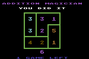 Addition Magician is a captivating educational video game designed to make learning mathematics an engaging experience for children. Released in the 1980s, this game is set in a whimsical, magical world where players are guided by a charming wizard character who teaches basic arithmetic skills through fun and interactive gameplay.