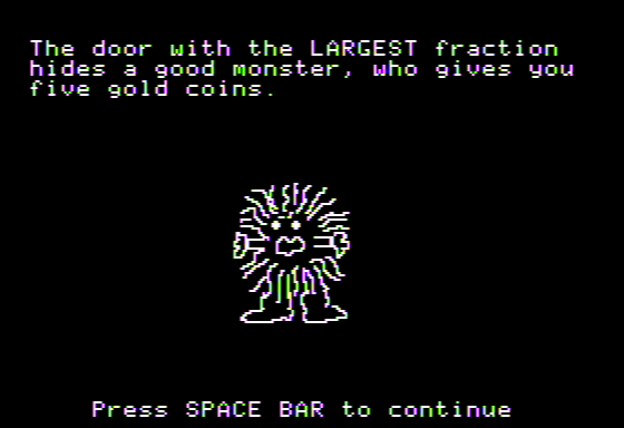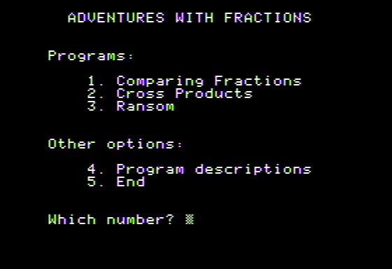 Adventures With Fractions is an educational video game from a bygone era designed to make learning fractions an exciting experience for young students. As a product of the early 80s, it stands as a testament to the nascent intersection of education and digital entertainment.