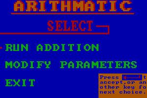 The gameplay revolves around solving a series of addition problems, progressing in difficulty as the player’s proficiency increases. Players are presented with a simple interface, typical of early computer games, which was designed to not distract but instead focus on the educational content. By answering correctly, players earn points, which can be used to motivate them to continue practicing and mastering the basics of addition.